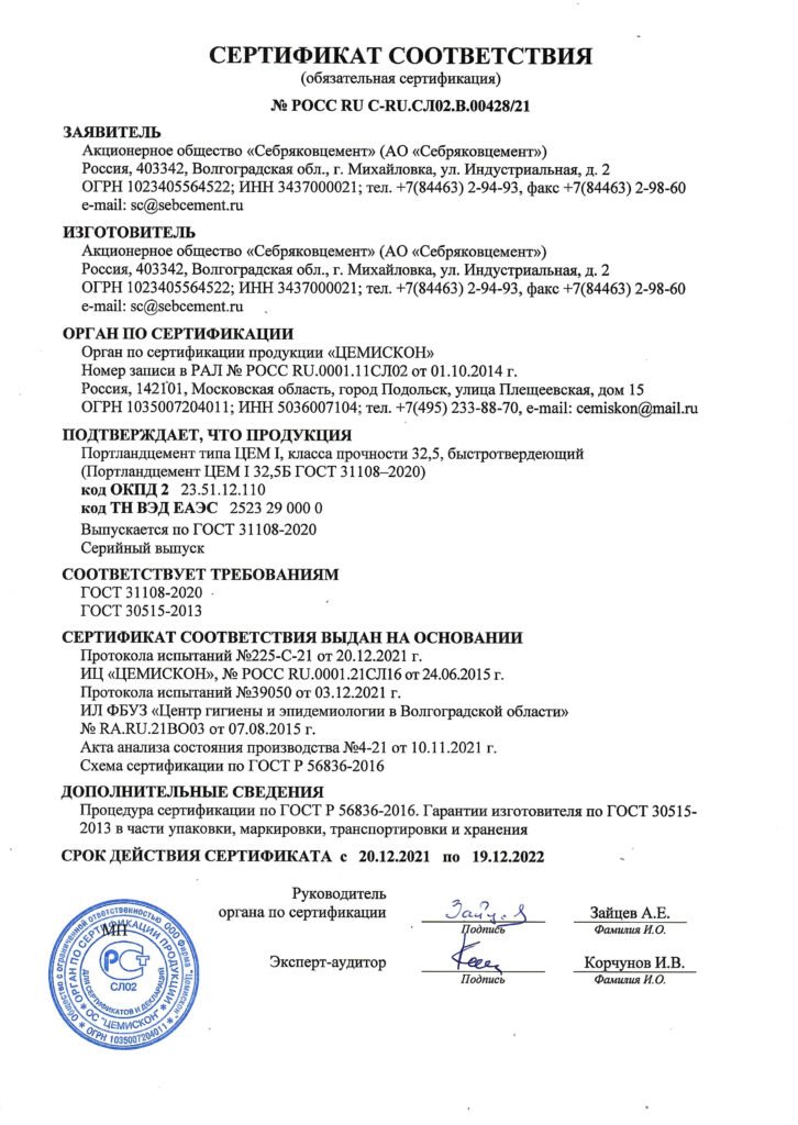 Цемент Себряковцемент ПЦ 400 Д20 (ЦЕМ I 32,5Б) - это высококачественный строительный материал, который идеально подходит для различных строительных работ.