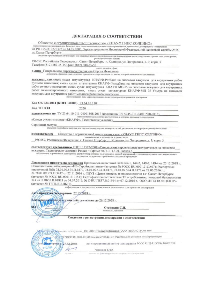 • Компания КНАУФ не гарантирует качество и долговечность получаемой поверхности в случае применения грунтов других производителей.