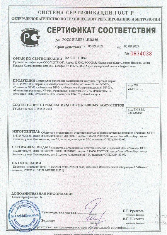Если вы ищете надежный и легкий материал для выравнивания полов, то стяжка ПЕТРОМИКС NF-02 20 кг - ваш идеальный выбор. Она обеспечит прочное и ровное основание для вашего пола, а также сэкономит ваше время и усилия при проведении строительных работ.
